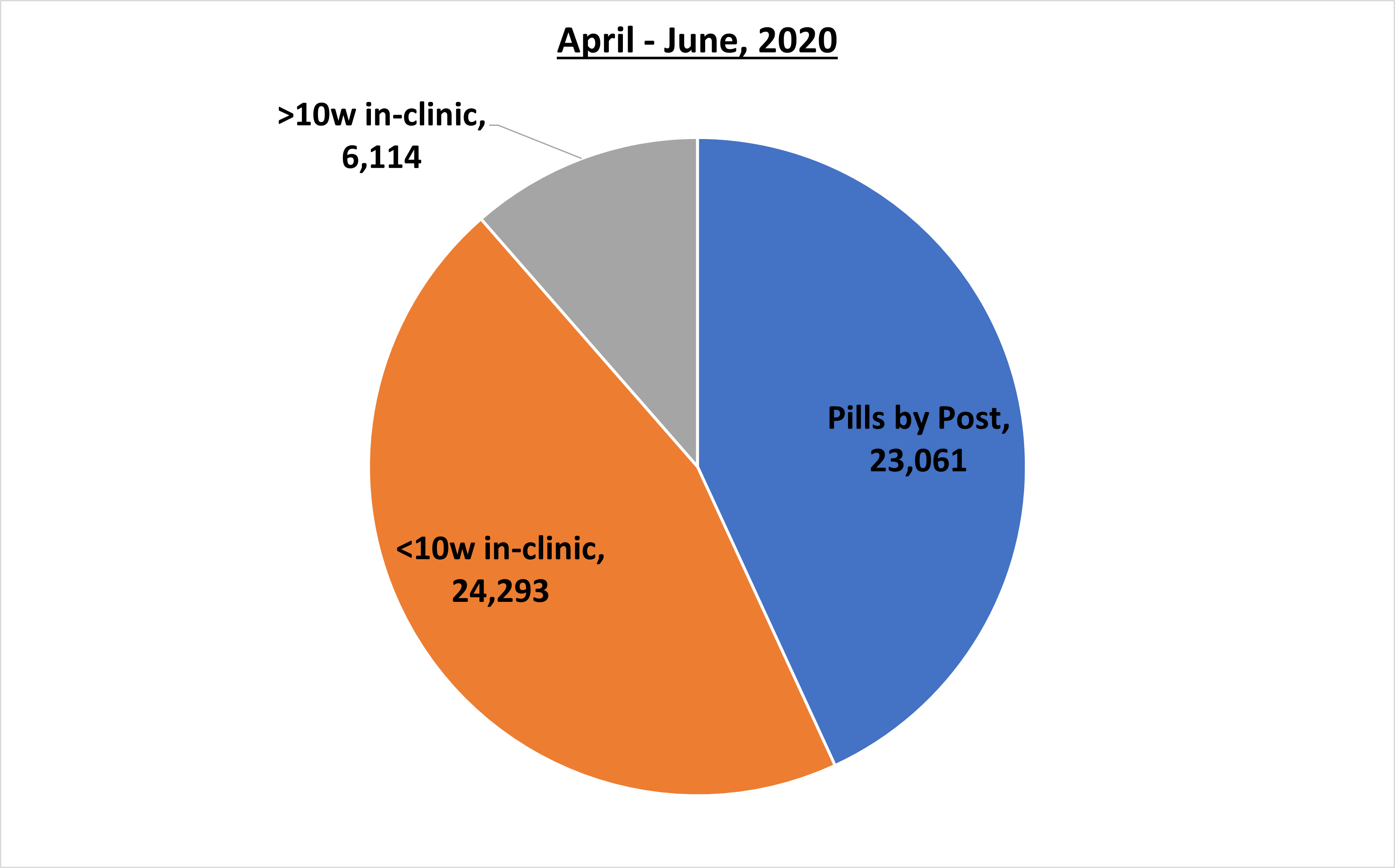 So, just under 50% of those eligible chose and were prescribed pills-by-post, 43% of the total abortions in these three months.