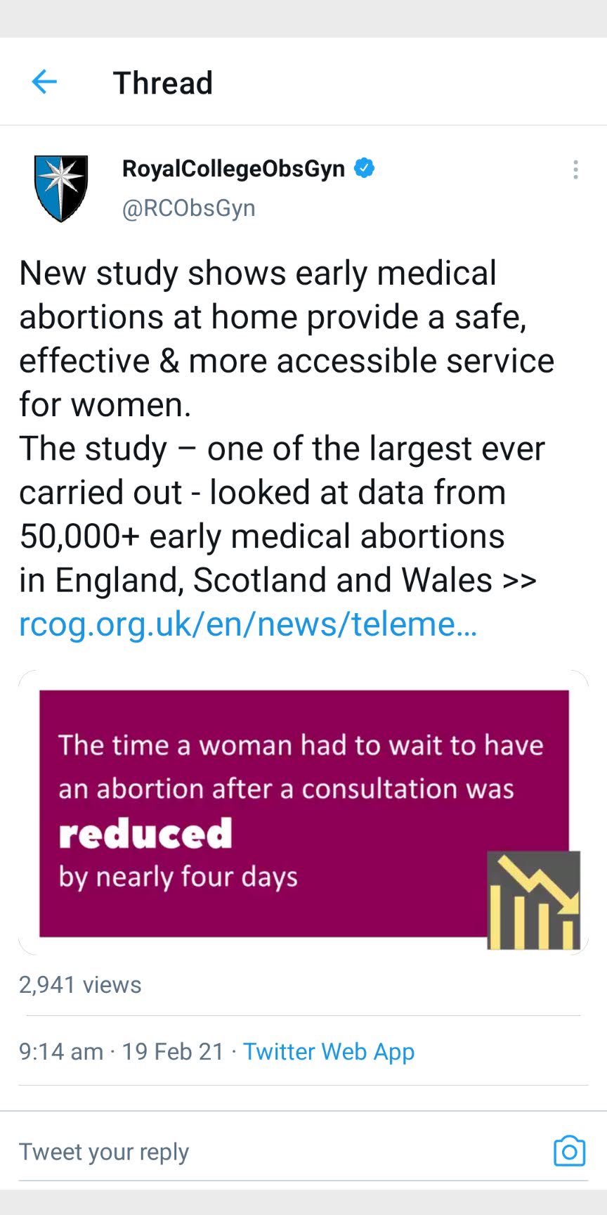 “New study shows early medical abortions at home provide a safe, effective & more accessible service for women… the time a woman had to wait to have an abortion after a consultation was reduced by nearly four days.”