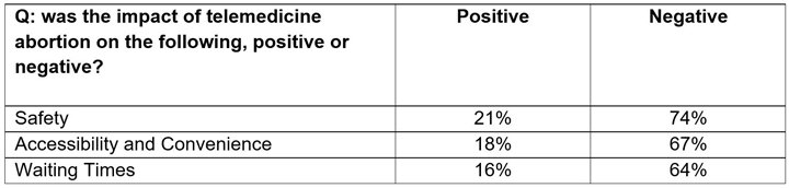 Respondents were asked to comment on how this temporary approval for telemedicine abortion had impacted on safety, accessibility and convenience of service, waiting times for women, and their preference for how early medical abortion should be provided after the end of the Covid-19 emergency.