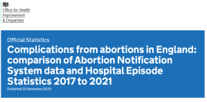 On 23 November 2023, the Office for Health Improvement & Disparities (OHID), part of the Department of Health and Social Care (DHSC), published new official statistics reporting the rate of complications arising from abortions in England. You can find further details in my earlier post: ‘Abortion complications – new official statistics’.