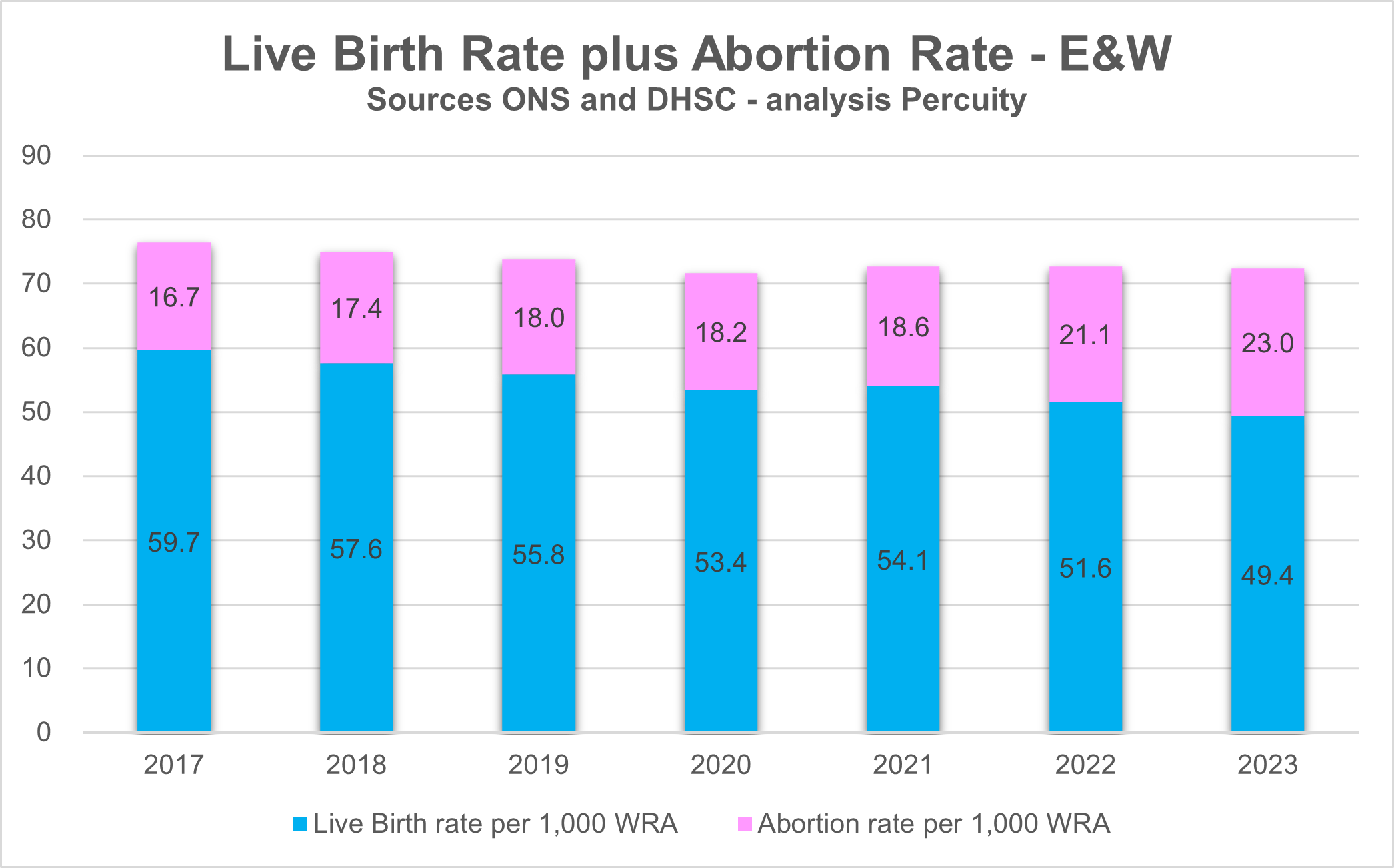 For healthy women with healthy pregnancies there are two possible outcomes, a live birth or an induced abortion. The Office for National Statistics (ONS) reports annual numbers of live births and these, unlike the abortion data, are based on fact, registrations of babies born.
