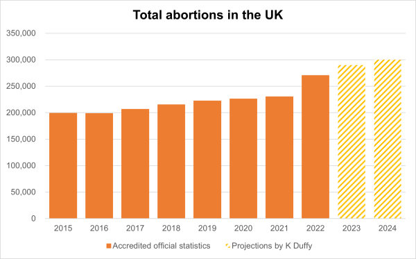 In 2024, there were 300,000 abortions in the UK, an 11% increase since 2022, when we last had a full set of accredited official statistics. This is my latest projection based upon recently published data. To be certain this increase is not solely a factor of increasing population, it is important that we also consider... Continue Reading →