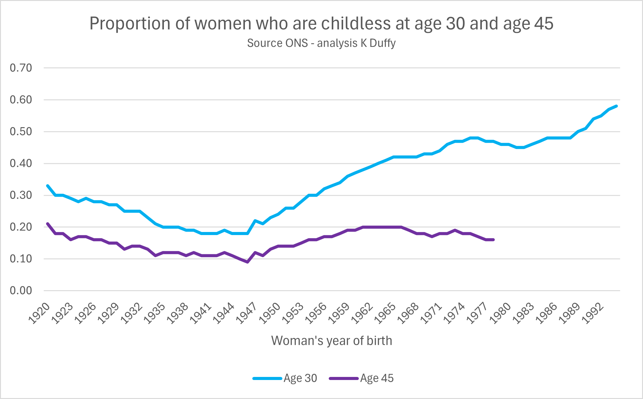 [8] Childbearing for women born in different years – Office for National Statistics. (2025, April 2). https://www.ons.gov.uk/peoplepopulationandcommunity/birthsdeathsandmarriages/conceptionandfertilityrates/datasets/childbearingforwomenbornindifferentyearsreferencetable